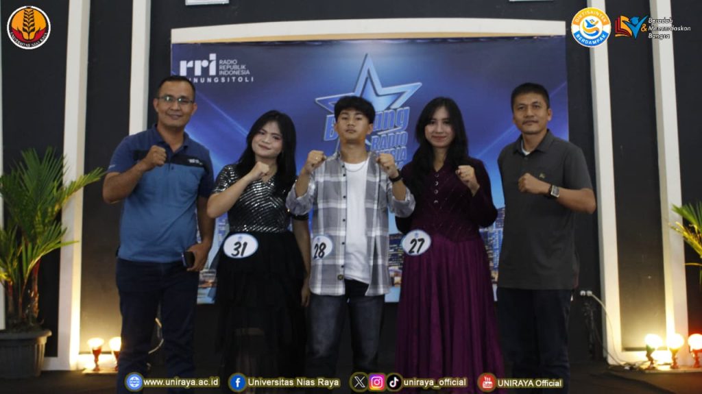 Gunungsitoli, 19 September 2025 – Tiga mahasiswa Universitas Nias Raya berhasil mengikuti Audisi Bintang Radio yang diselenggarakan oleh RRI Gunungsitoli, Jumat 19 September 2025. Keikutsertaan mereka merupakan bagian dari dukungan kampus untuk mengasah bakat dan kreativitas mahasiswa di luar kampus.