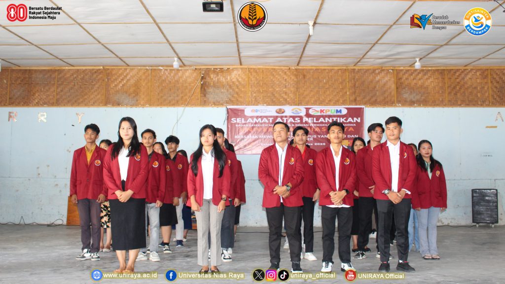 Universitas Nias Raya, 07 Agustus 2025, Universitas Nias Raya resmi melantik Badan Eksekutif Mahasiswa (BEM) dan Dewan Perwakilan Mahasiswa (DPM) periode 2025-2026 dalam acara bertema “Bersama Mewujudkan Kampus yang Maju dan Berkarakter” yang digelar di Aula Kampus, Kamis (07/08) pukul 09.00 WIB. Acara ini dihadiri oleh seluruh pimpinan Universitas termasuk Warek I, II, dan III, dosen, mahasiswa, serta pengurus KPUM.
