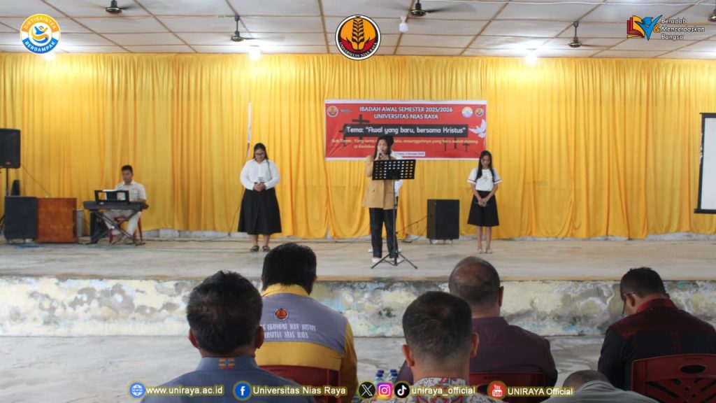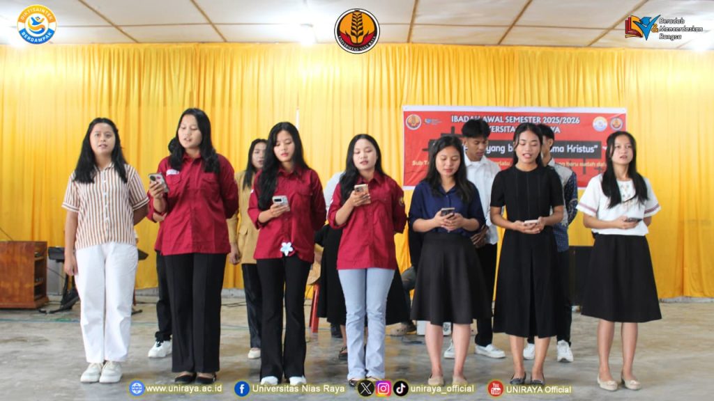 3 Oktober 2025, seluruh civitas academica Universitas Nias Raya, bersama dalam sebuah ibadah awal semester yang khidmat di Aula Universitas Nias Raya. Ibadah ini dilaksanakan untuk menyambut awal semester dengan harapan dan doa supaya di semester ini proses perkuliahan dapat berjalan dengan lancar dan penuh berkah.